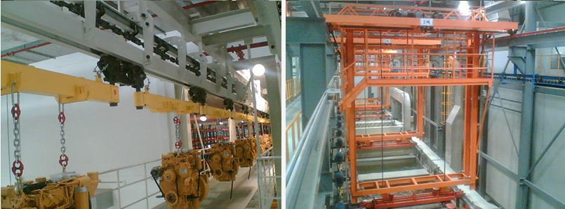 The accumulative conveying system consists of the following parts: all the conveying rails (including the interior of the chamber), the ground steel structure, the conveying system, the upper and lower pieces hoist lifting device, and the on-site control equipment. The maximum weight of the workpiece is 1184Kg; the largest size is 2590×1880×2640mm; the production line beats 8min. The control system includes an electrical control for loading and unloading the integrated delivery system and the spray accumulation system, a central control room monitoring system, a coded label recognition system, and an ANDON system. Among them, the loading and unloading conveying system accumulative conveying system is PLC#1 area, and the spraying and accumulating conveying system is PLC#3 area. Each zone is equipped with a PLC system and Ethernet interface to communicate with the central control room monitoring system. The control system uses fieldbus and the field control I/O uses the SIEMNS ET200S series. All inverters in the system are controlled and monitored online via PROFIBUS.