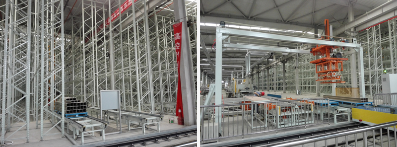 整個系統物流中心由貨架系統、堆垛機系統、托盤輸送系統、板材輸送系統、板材碼垛系統、板材外形及平整度檢測系統、激光噴碼系統、配套的電氣控制系統、WMS/WCS系統及硬件等組成。
