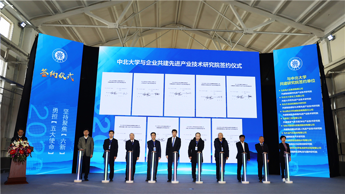 2020年12月23日,中北大學科技成果推介洽談暨共建先進產業技術研究院簽約揭牌儀式在中北大學隆重舉行。山西省人民政府副省長王一新、中北大學黨委書記沈興全、中北大學校長熊繼軍出席會議,山西省政府辦公廳主任趙國光主持,副省長王一新為共建先進產業技術研究院揭牌。