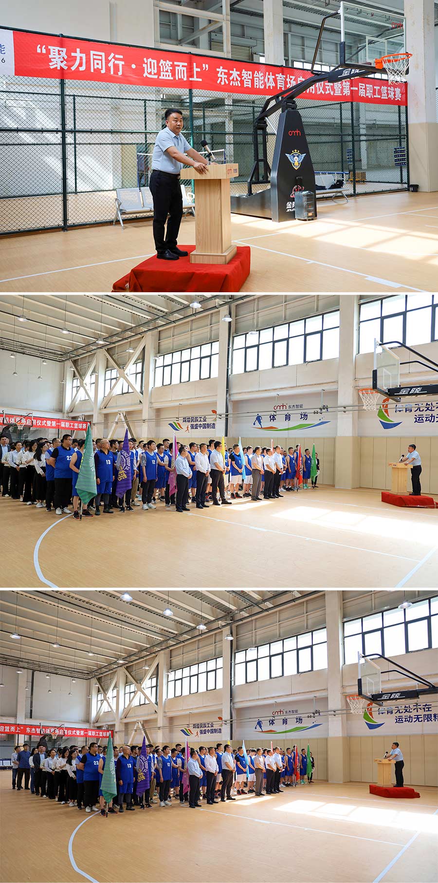近日,一場盛大的“聚力同行·迎籃而上”東杰智能體育場啟用儀式暨第一屆職工籃球賽決賽在東杰智能總部體育場璀璨啟幕。活動由集團營銷中心副總經理侯晉雷先生主持,集團總經理王振國先生攜高管團隊——副總經理朱忠義、郝志勇,董事會秘書張新海,以及總經理助理劉云峰等親臨現場,共同見證了這一歷史性時刻。